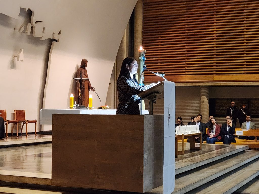 La directora de la Escuela de Medicina Veterinaria, Dra. Andrea Moreno, ofreció también un mensaje en el que recalcó que “como carrera de medicina veterinaria abrazamos una formación integral. Por eso, en este momento tan especial nos acompaña una bendición religiosa que, desde nuestra tradición católica y nuestra identidad, invoca protección, sabiduría y fortaleza para ustedes”.