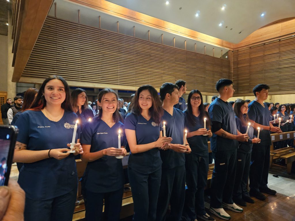 La simbólica celebración, que marca el momento en que las y los estudiantes inician sus prácticas clínicas y sus primeras experiencias de cuidado, fue guiada por el sacerdote franciscano P. Matteo Martinelli, y congregó a 117 alumnas y alumnos de las generaciones 2021 y 2022, acompañados de sus familias, seres queridos, docentes y autoridades de las facultades de Medicina, Agronomía y Sistemas Naturales, y de la escuela.