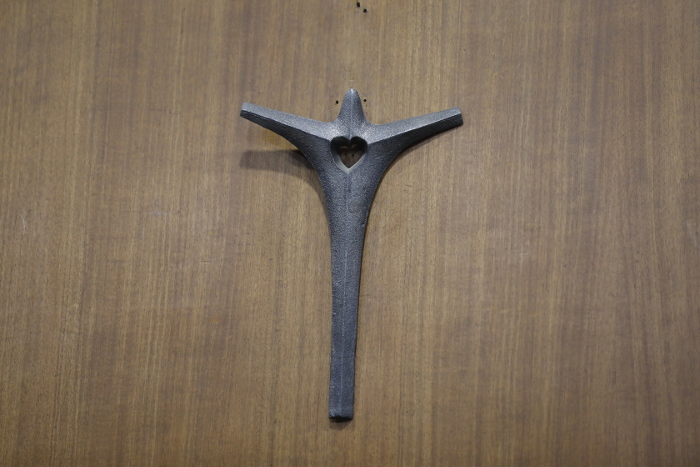 Esta cruz está en todas las salas de la UC desde el año 2011, cuando el entonces alumno José Francisco Mutis, ganó el Concurso «Cruz UC» organizado por la Pastoral. José Francisco creó el boceto del Cristo, Alberto González llevó el boceto a un modelo real y Rodrigo Arias fue el encargado de su reproducción.