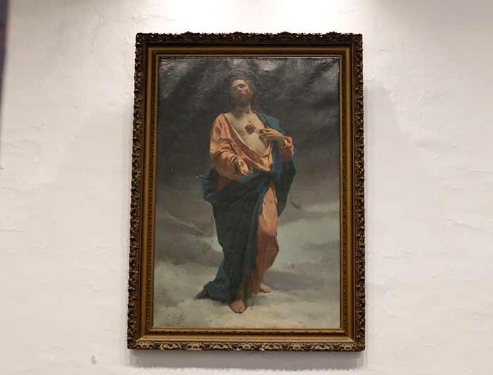 Ubicado en esta capilla, que también se utiliza como sala de clases, se encuentra este cuadro en el cual Jesús lleva una túnica roja, que simboliza la sangre. Además tiene un manto azul, color del cielo y de lo divino. Su rostro está rodeado de una corta barba, con una mano indica su corazón irradiado por las llamas y rodeado por una corona de espinas. Sobre su corazón hay una cruz.
