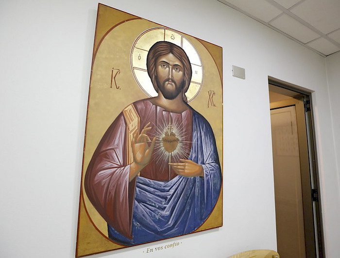 La capilla grande de Campus Lo Contador tiene un cuadro con una imagen tradicional del Sagrado Corazón.