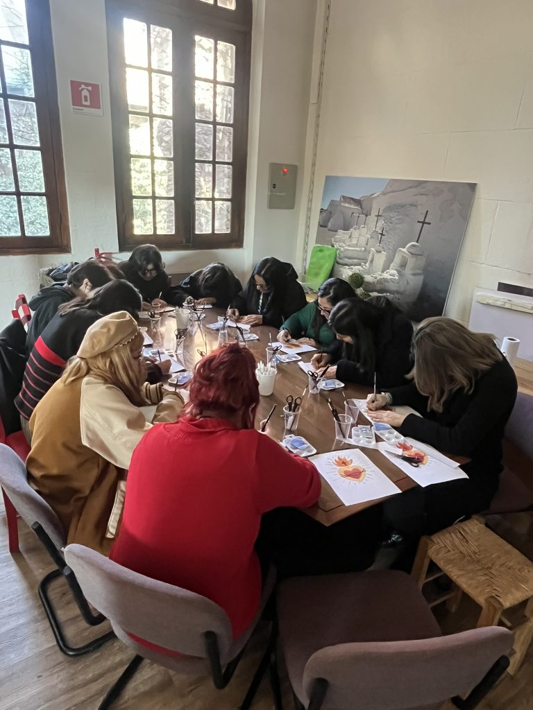 Tenemos 3 talleres durante el año: Taller de Pascua en Semana Santa; Taller de Sagrado Corazón en junio y Taller de Adviento en noviembre.