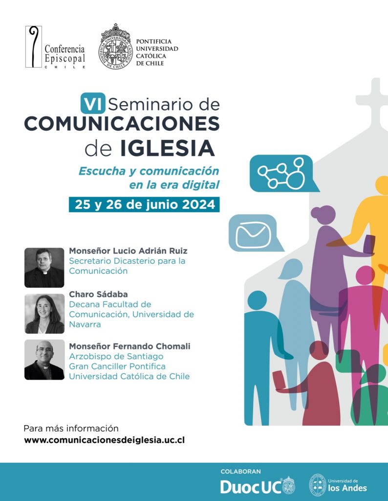 En la actualidad, en el auge de la era digital, la comunicación y la escucha son elementos esenciales para la construcción de una iglesia sinodal, abierta al diálogo y al encuentro. Por eso, la Pontificia Universidad Católica de Chile, en conjunto con la Conferencia Episcopal y con la colaboración de Duoc UC, la Universidad de los Andes y la Pastoral UC, han organizado la VI versión del Seminario de Comunicaciones de Iglesia “Escucha y comunicación en la era digital”.