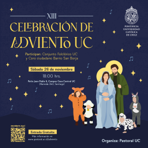 “¿Qué es el Adviento? Adviento significa venida. Es un tiempo de espera”. Así comenzó el cuento que dio vida a la XIII Celebración de Adviento UC que preparó la Dirección de Pastoral y Cultura Cristiana para empezar el tiempo litúrgico de preparación para la Navidad.